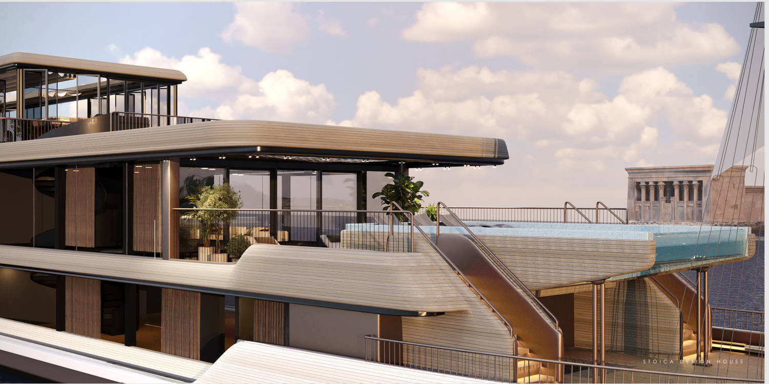 ORO, the 1st Nile sailing boat with 3 plunge pools onboard, featuring the world’s 1st hanging plunge pool on a boat, an innovative design for unforgettable moments.